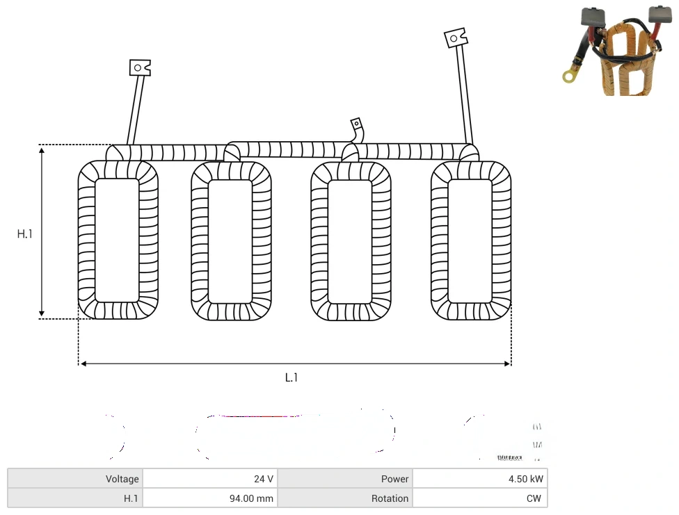 Starter field coils Voltage [ V ] 24 Power [ kW ] 4.50 H.1 [ mm ] 94.00 Rotation CW