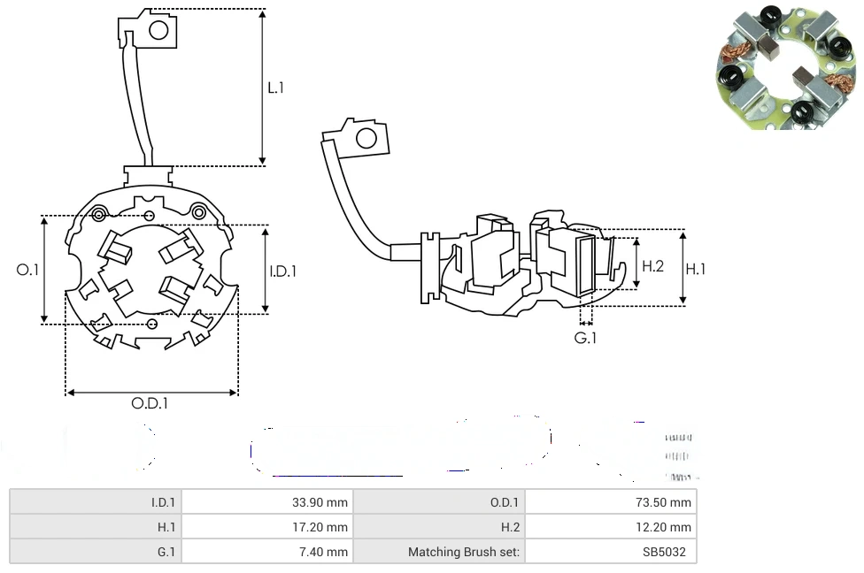 Starter brush holders I.D.1 [ mm ] 33.90 O.D.1 [ mm ] 73.50 H.1 [ mm ] 17.20 H.2 [ mm ] 12.20 G.1 [ mm ] 7.40