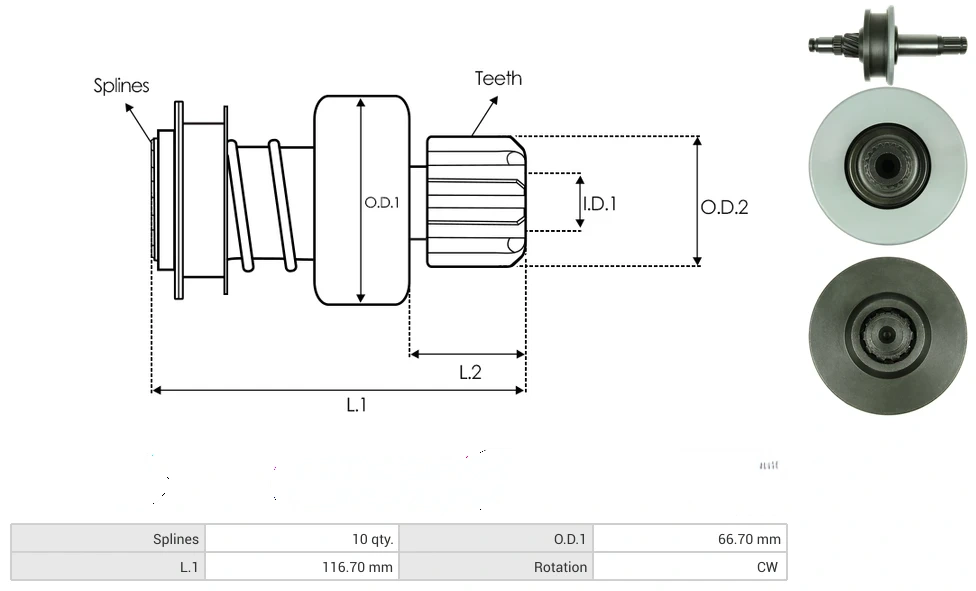 Starter drives Splines [ qty. ] 10 O.D.1 [ mm ] 66.70 L.1 [ mm ] 116.70 Rotation CW