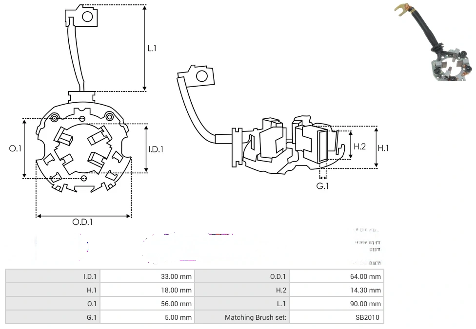 Starter brush holders I.D.1 [ mm ] 33.00 O.D.1 [ mm ] 64.00 H.1 [ mm ] 18.00 H.2 [ mm ] 14.30 O.1 [ mm ] 56.00 L.1 [ mm ] 90.00 G.1 [ mm ] 5.00