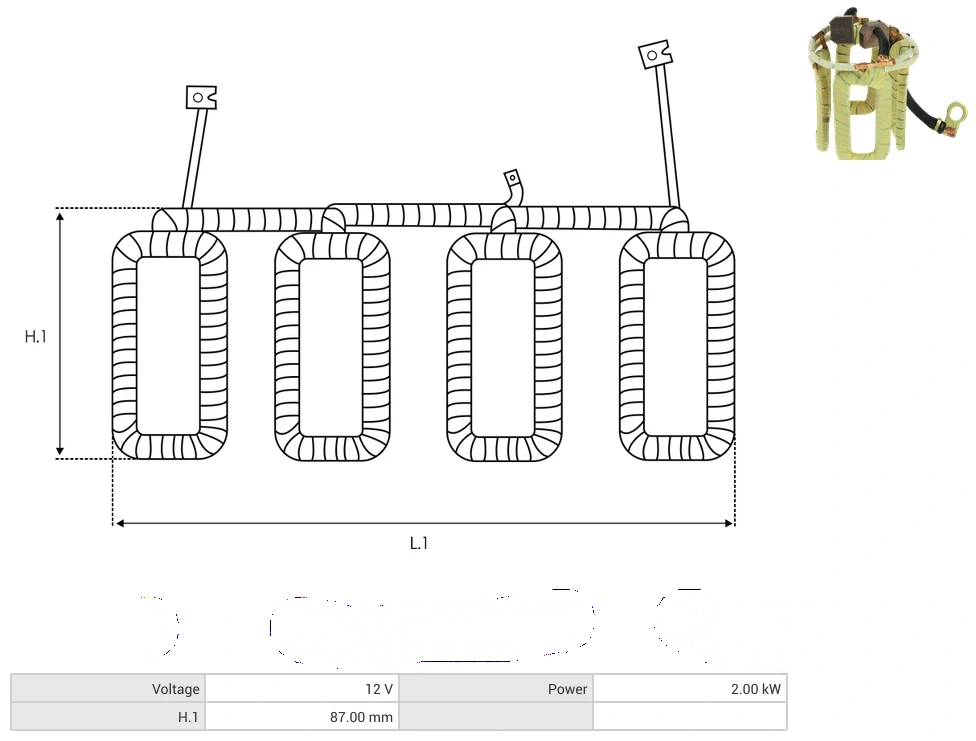Starter field coils Voltage [ V ] 12 Power [ kW ] 2.00 H.1 [ mm ] 87.00